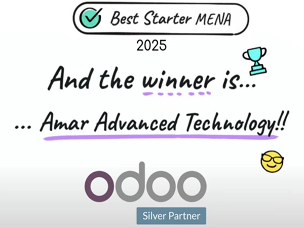 تقديراً لالتزامنا بالجودة والنجاح مع عملائنا، تم اختيار امار كأفضل شريك مبتدئ لشركة Odoo في المملكة العربية السعودية 2025 وتم تكريمنا لاحقاً كأفضل شريك مبتدئ لمنطقة الشرق الأوسط وشمال إفريقيا 2025. تعكس هذه الجوائز الثقة التي يضعها عملاؤنا فينا وقدرتنا على تقديم حلول تخطيط موارد المؤسسات (ERP) المؤثرة والقابلة للتطوير.